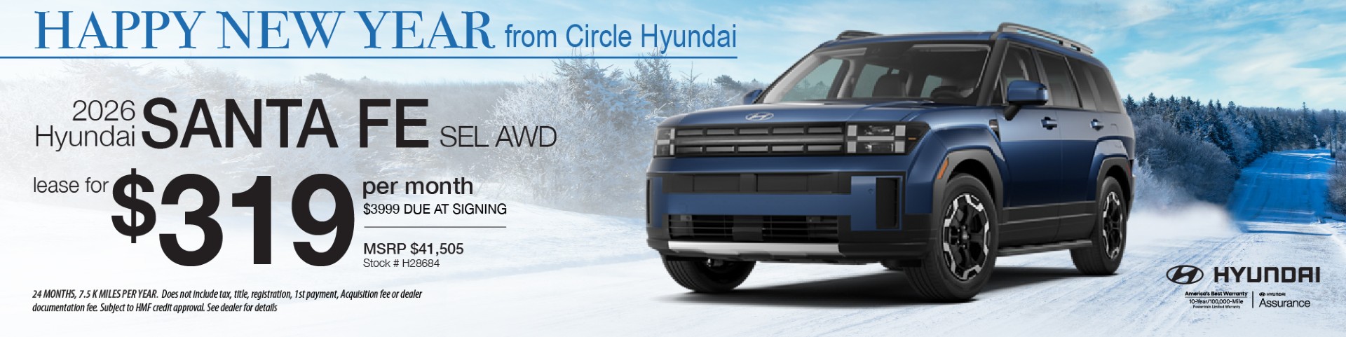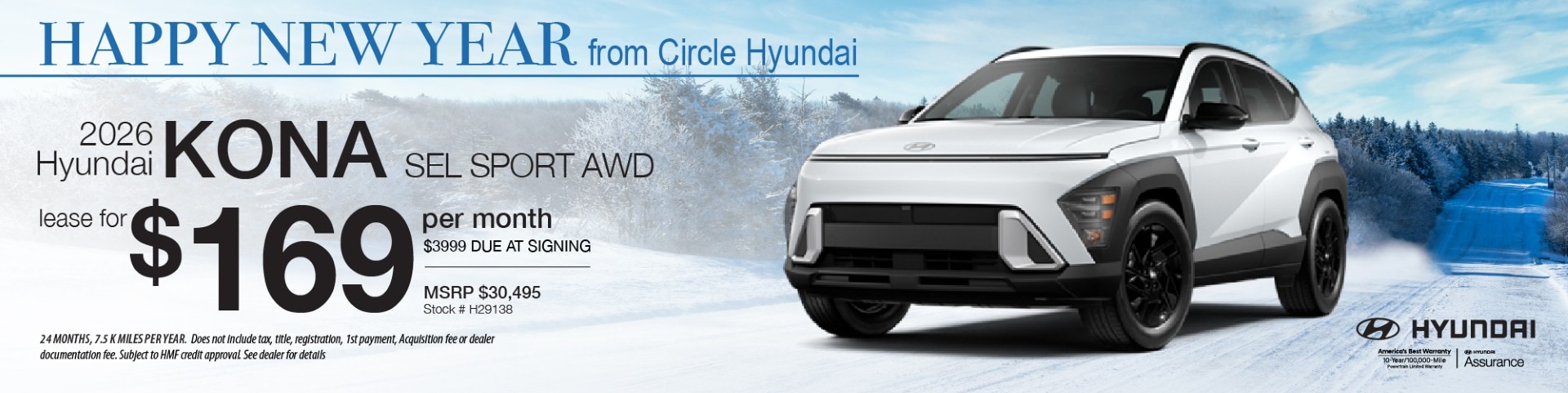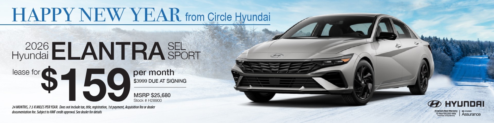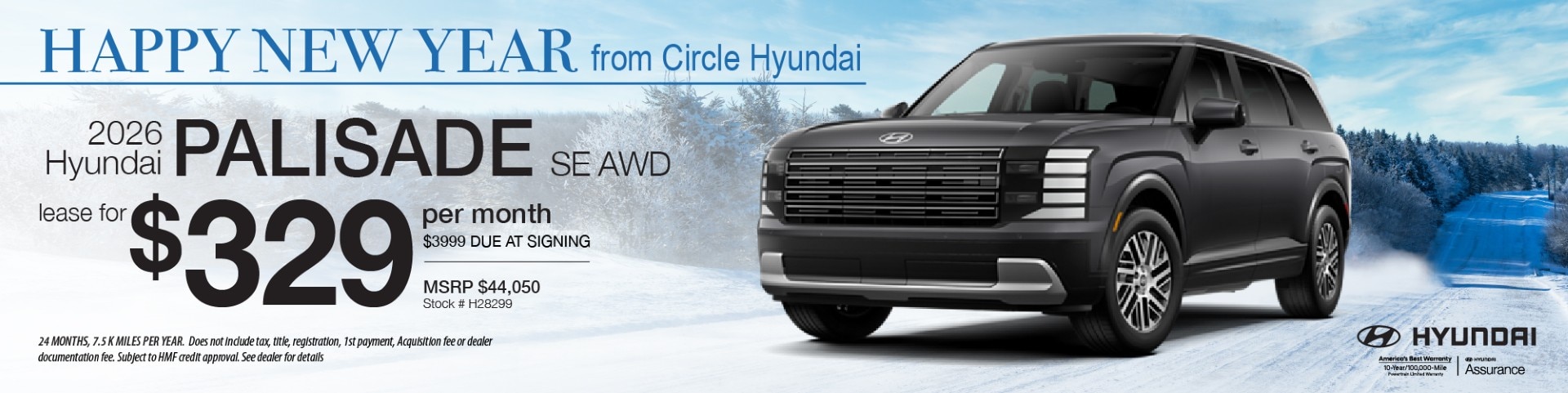 Conditions apply: Must finance with Hyundai Motor Finance at standard rates. Offer not compatible with any other offers or coupons. Vehicle must be taken from dealer stock. Additional costs include state sales tax, license and registration fees, and dealer documentation fee. Offer expires 12/31/25